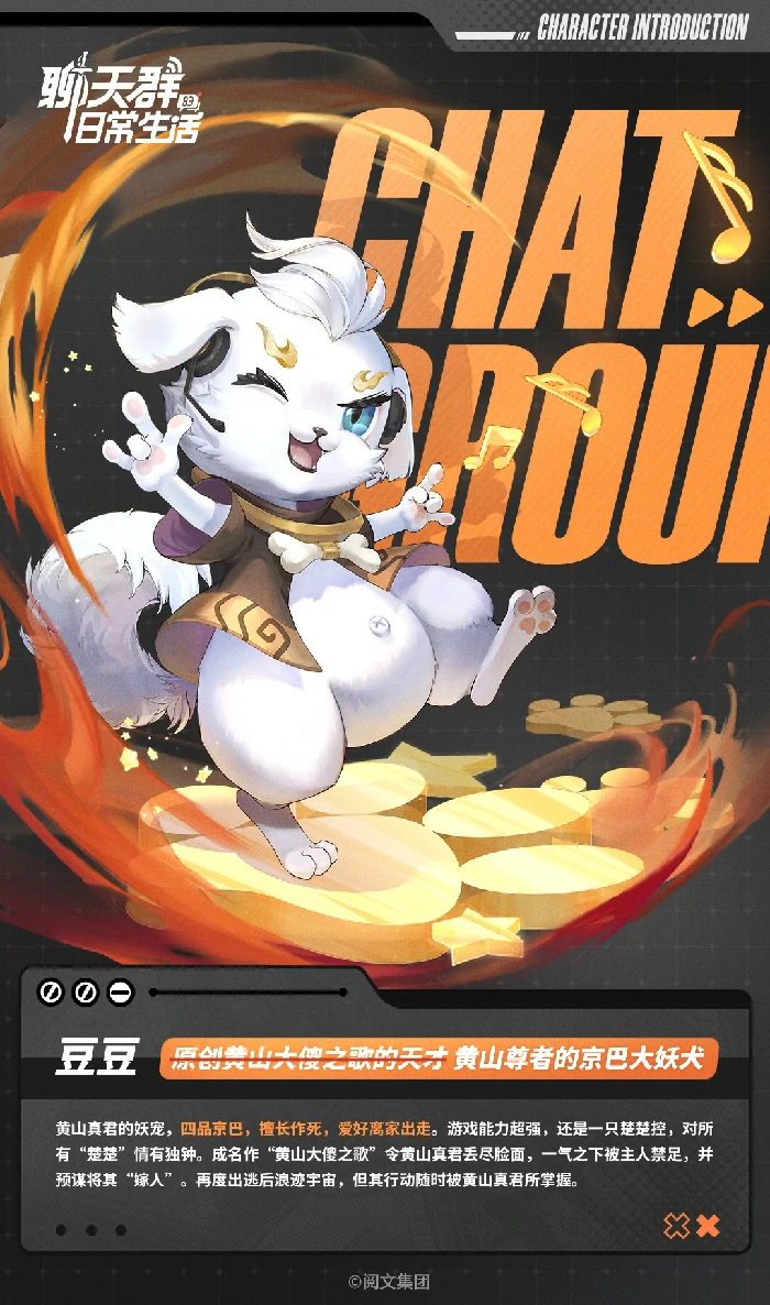 本期登场修聊人气王大妖犬豆豆,未化人形就魅力非凡。它是“楚楚控”,对各类“楚楚”深情不变。游戏实力顶尖,修炼天赋出众,连主人黄山真君都敬它三分。
