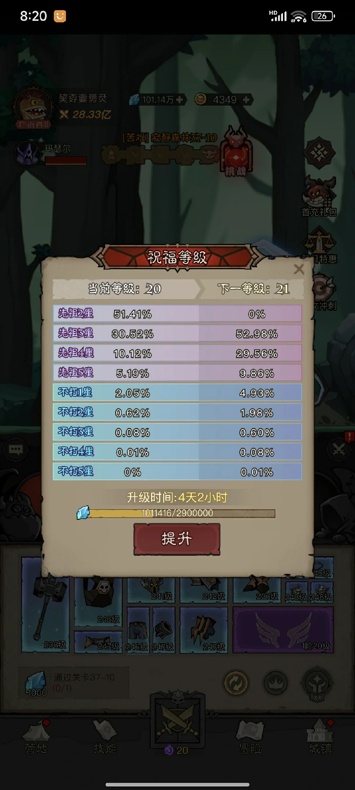 4. 有核心技能就不买符文,锤子只买打折的,图鉴全开后停买,其余金币换奥晶提升祝福等级。