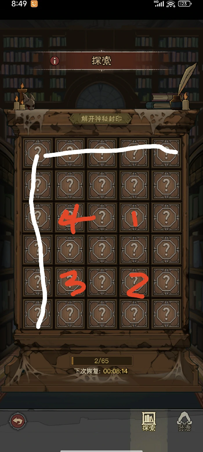 图书馆点亮顺序:按特定顺序点,白区不点,没雕像跳过。