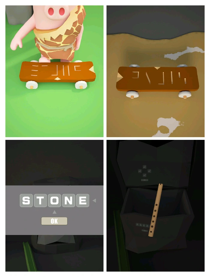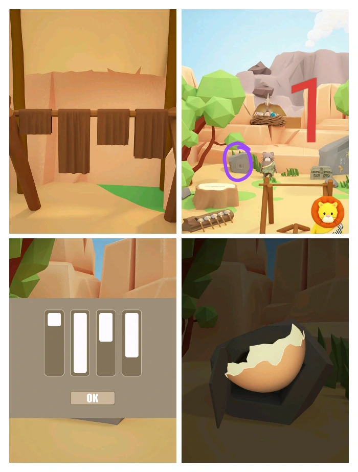 5. 按木板标记,解开①处石头机关,拿蛋壳