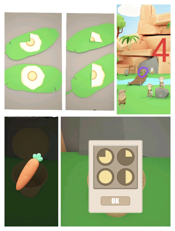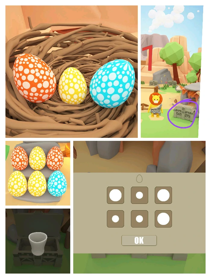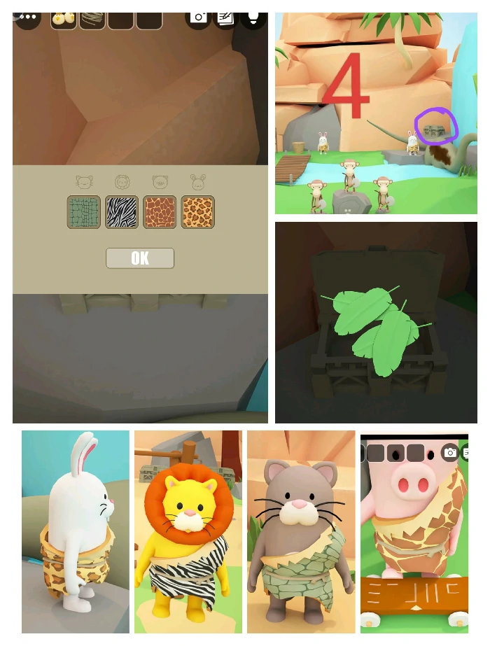 8. 观察动物衣服纹样,打开④处箱子,取叶子