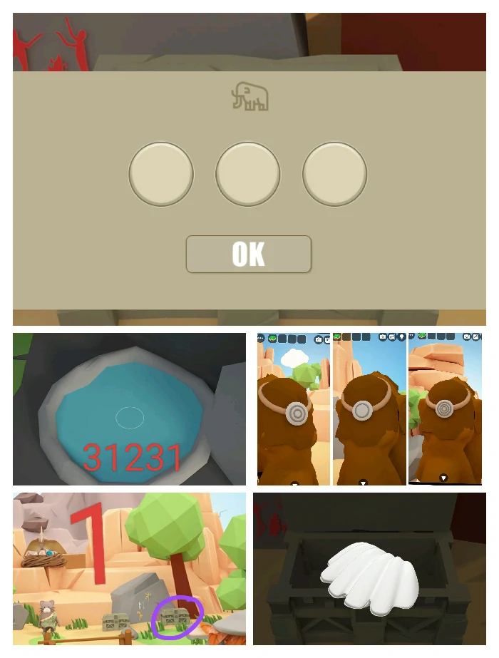 依据水波圈数31231,对应猛犸象动作:右中左右中,打开①箱子,拿贝壳