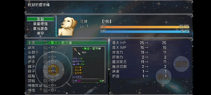单独和旺财战斗并获胜,拿磨牙棒,还能收它为伙伴