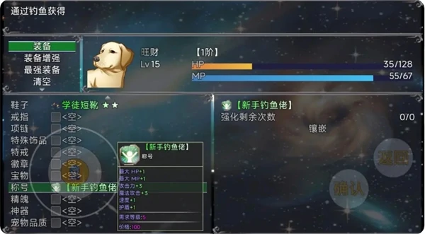 打镇中狗狗旺财,有概率掉隐藏武器磨牙棒,可重复挑战,状态不好回家休息或买药水回血,击败后邀其入队并配装
