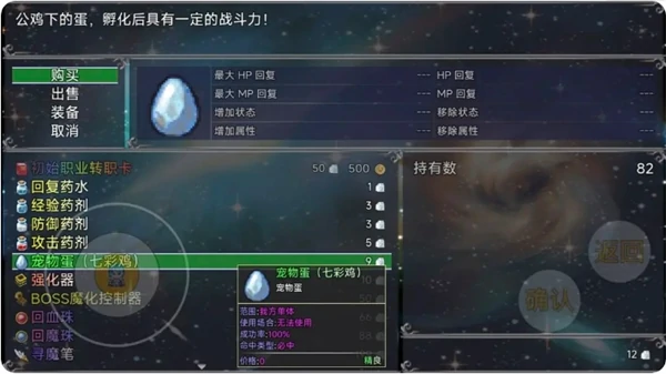 在宠物饲养员处孵化得第二只队友,鸡王也掉该蛋。孵化随机生成阶级(1 - 10阶)和品质(普通至神话),新宠物继承原宠物等级,替换阶级和品质