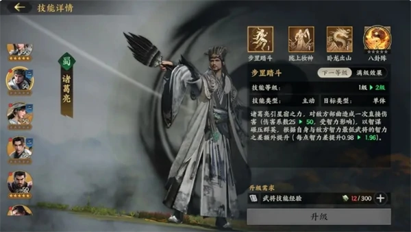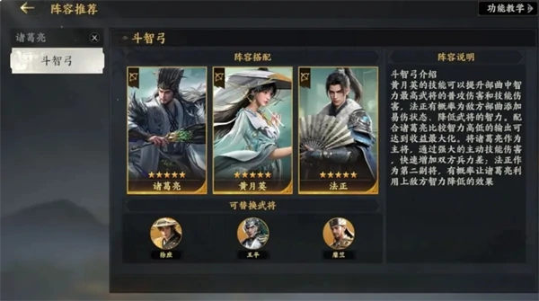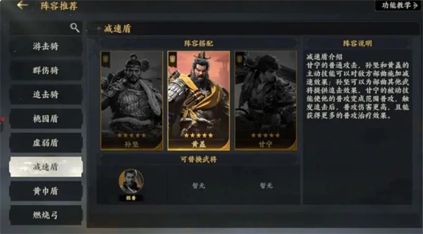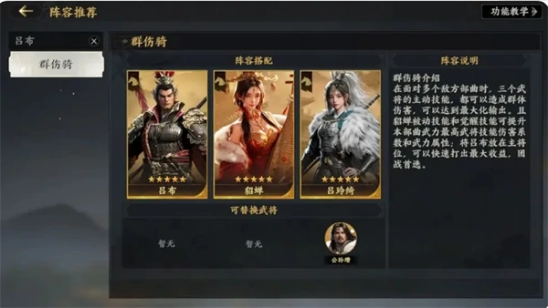 在武将详情界面点“略”,查看系统推荐的阵容模板和下位替代建议,快速组有战斗力的队伍。
