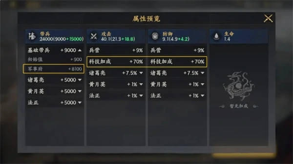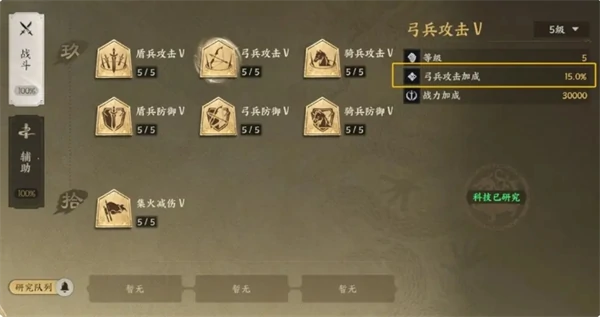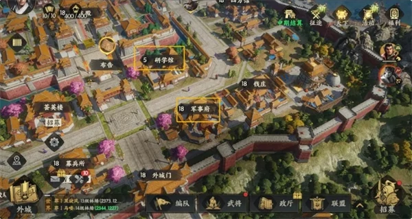 除招募武将养成,还能升级军事府和相关科技树增强部队属性。这类升级耗石料和木材,能带来可观属性增益。