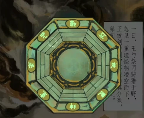 调整八卦镜,线索在前一章,可查资料。调好后拖到眼球上方,把剑上金球拖入水中漩涡,剑尖对准眼球。