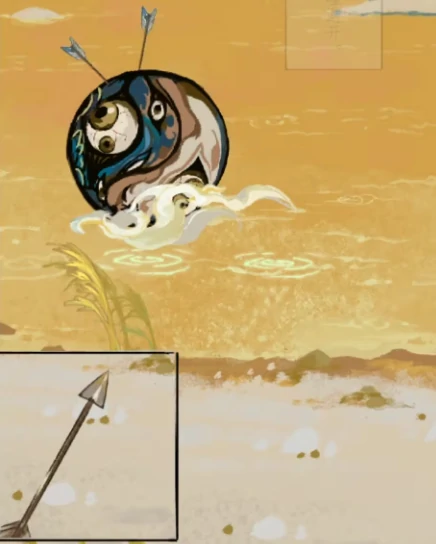 平衡后,将下方眼球拖到上方,右侧箭移到左侧预判眼球动作。把弟弟箭放姐姐弓上,鱼鳞片拖到姐姐手中,左侧芦苇拖到蝴蝶身上,点击对面怪人解谜。