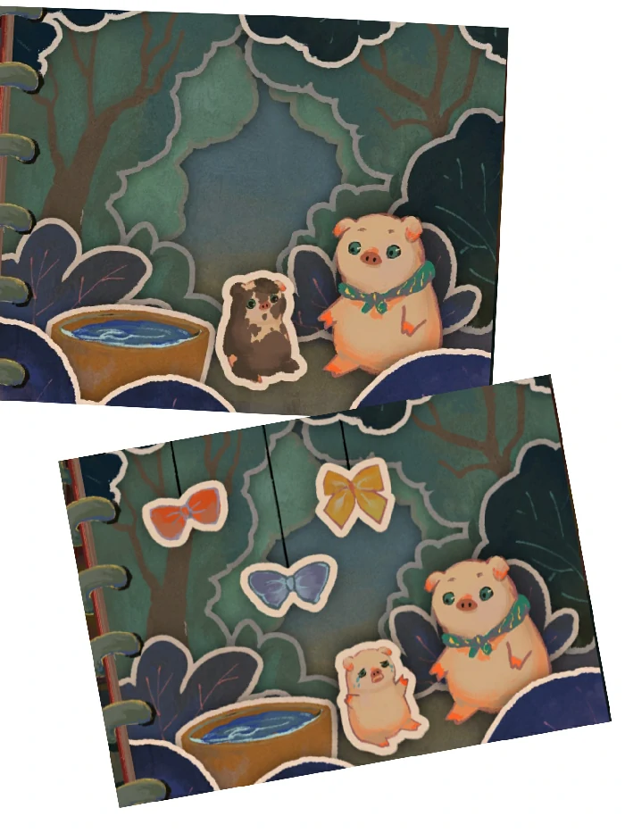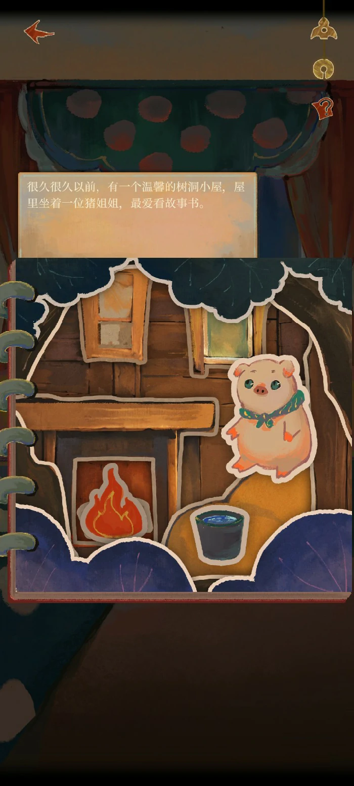 到第三场景小猪蹄拼图处,用手链触发互动,完成拼图后读三只小猪故事书。