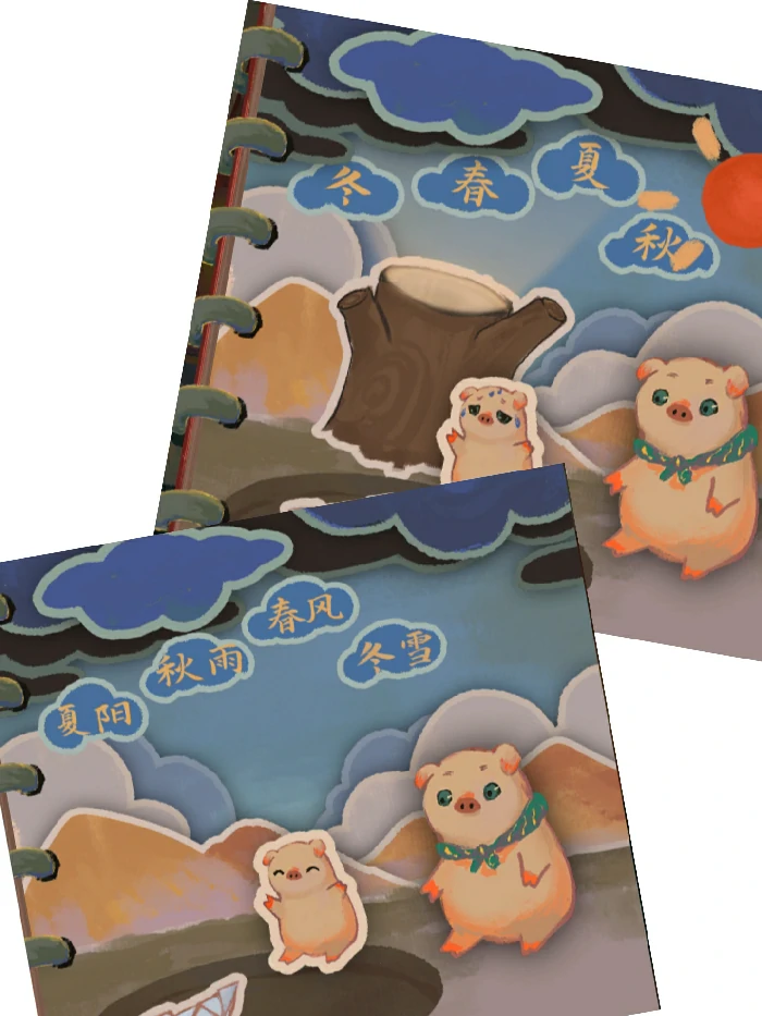 按“春去秋来,年复一年”顺序排书页字块,进第二页。