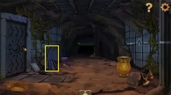 通过隐藏密道,到橙色门前,点击场景左下角人物斗篷,获第七枚金币。