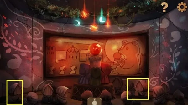 前往日神珠所在房间,点击场景左下角与右下角斗篷,拿最后两枚金币,收集完成。