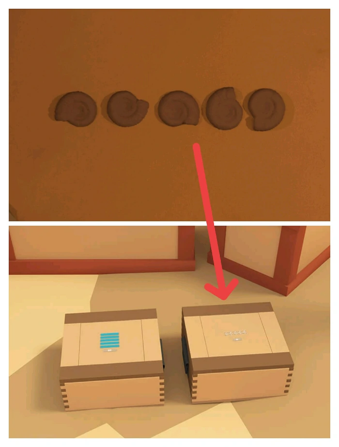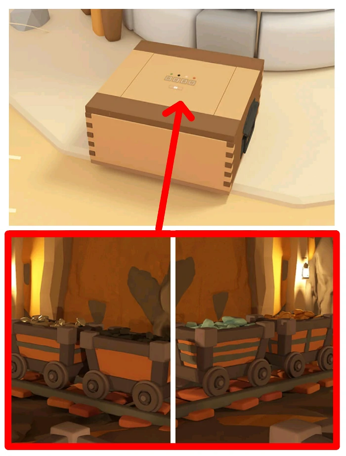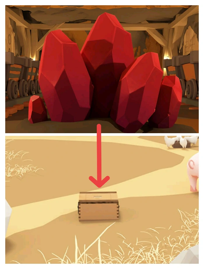 根据红色大矿石形状,推断第二场景最后一个箱子密码,打开箱子拿沙锤。