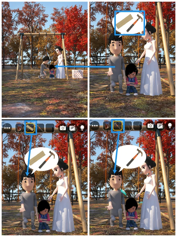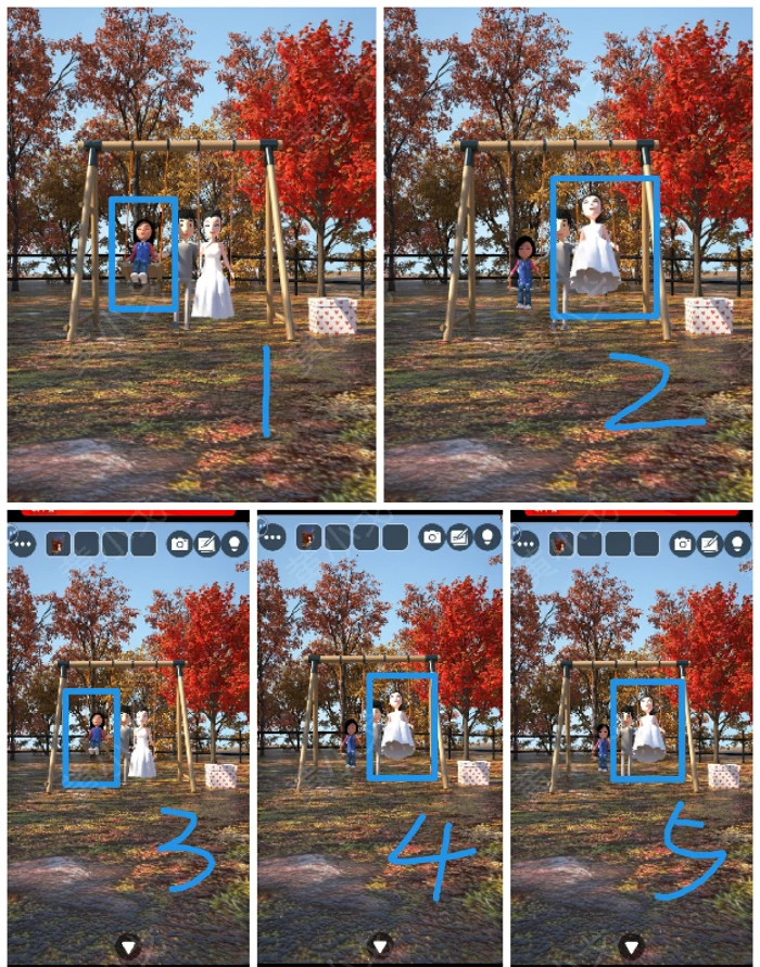 11. 男主人修好秋千,观察女孩和女人荡秋千规律:左、右、左、右、右
