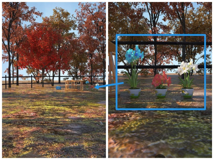 1.查看桌子旁花瓶,获取花颜色和高度提示:蓝色-高、红色-矮、白色-中