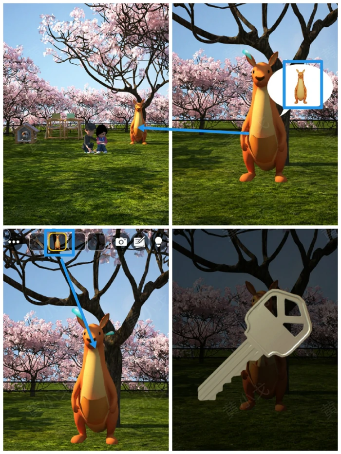 8.遇到袋鼠妈妈,把袋鼠还给它,得到钥匙