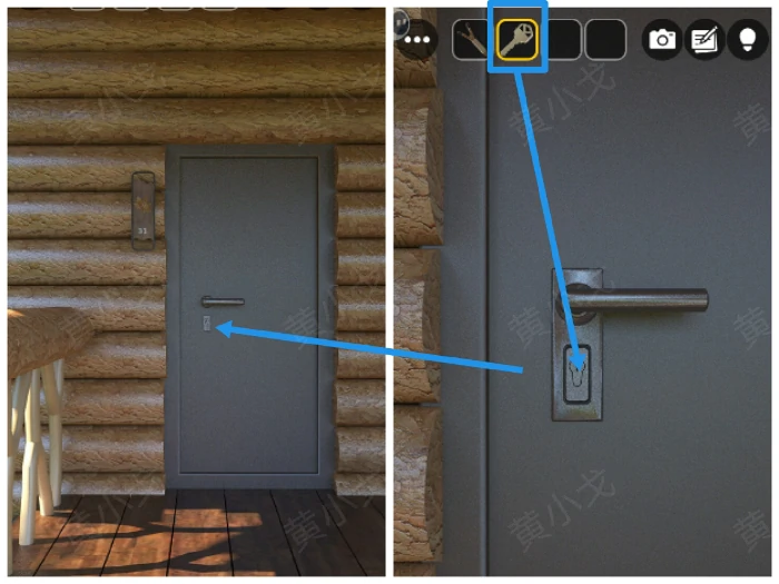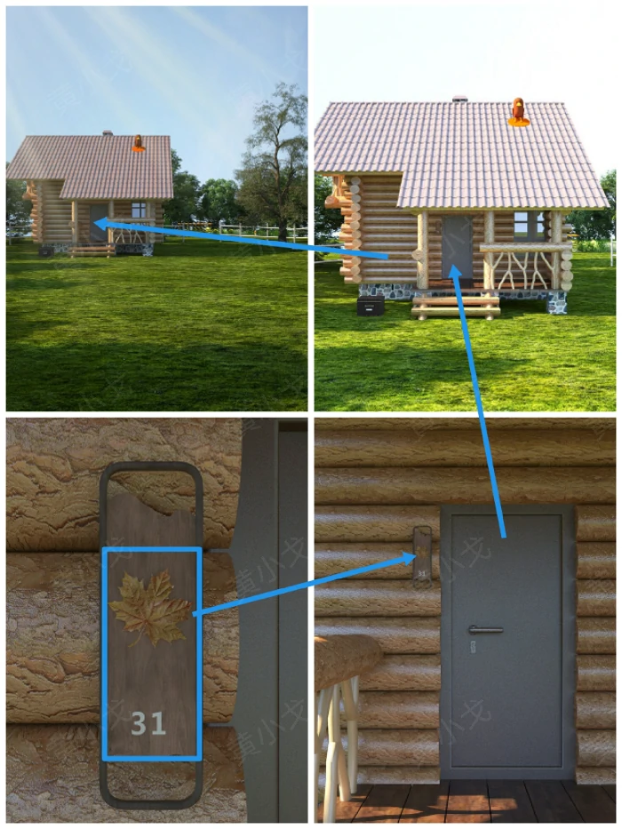 9.找到木屋,查看门牌,留意枫叶黄色及数字31
