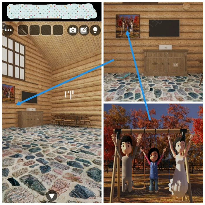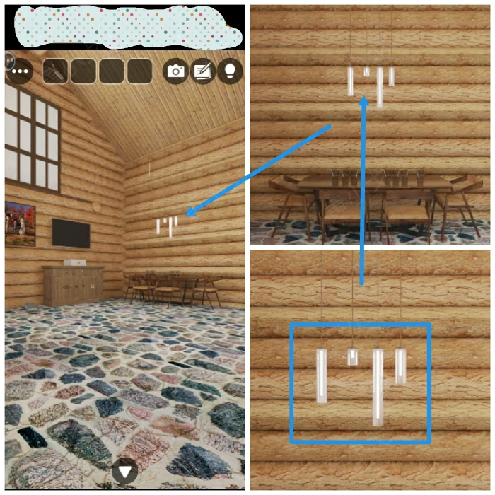 11.进入木屋,记住桌子上方吊灯高度顺序:3、1、4、2