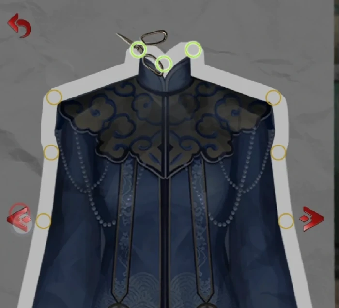 看左侧桌子,用剪刀在图纸上触发小游戏,操纵剪刀碰黄点,难就跳过。完成后拿纸衣服,和纸人头在竹架组合,得完整纸人。