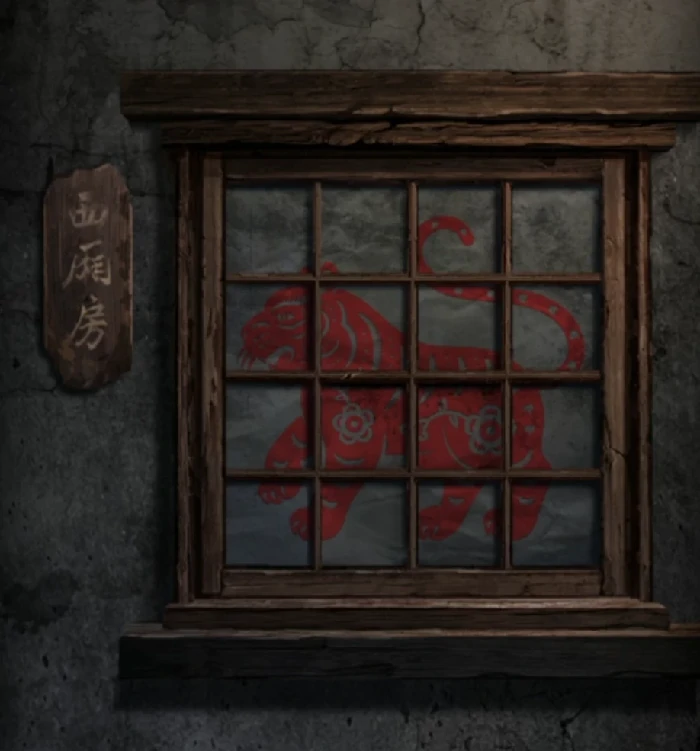 查工作室与卧室间窗户,从窗台拿火柴,记“西厢房对应老虎”“老虎为红色”线索。