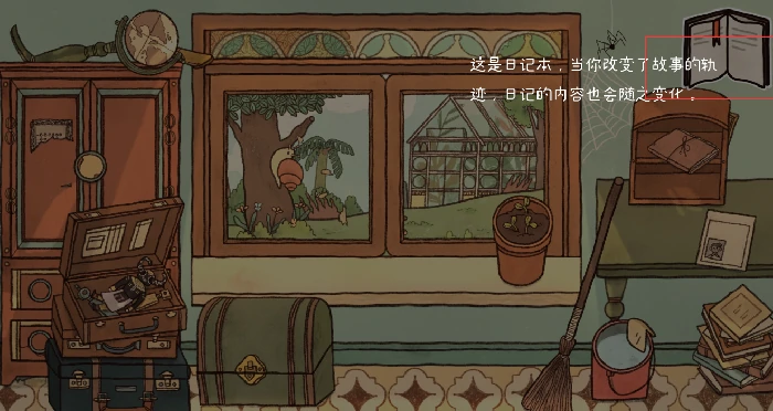 拾取桌上日记本阅读,完成基础操作教学。