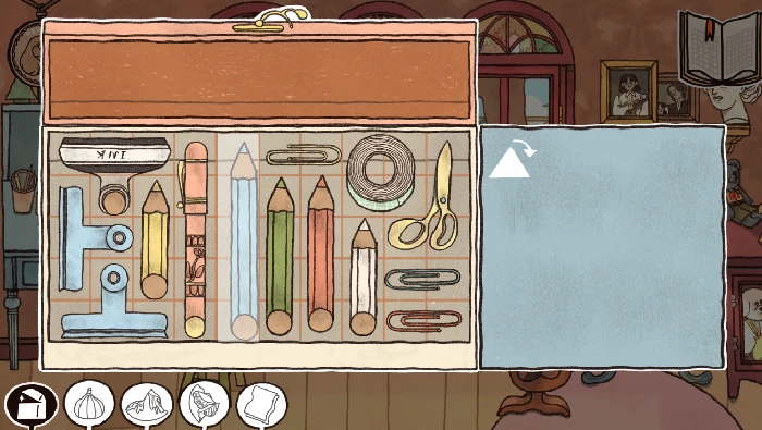 切换到G08年,玩“小提琴”与“笔盒”小游戏,获“铅笔盒”和“纸”。