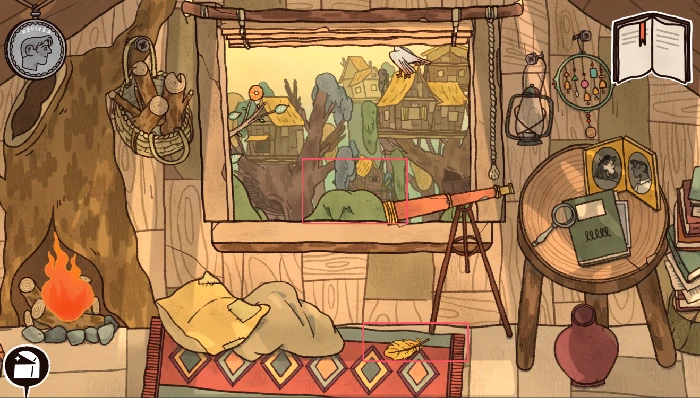 查完日记,去弄望远镜,完成小游戏,移动画面捡蝌蚪和头冠,放糖果拿鱼钩。望远镜游戏得仔细观察不同视角的图形。