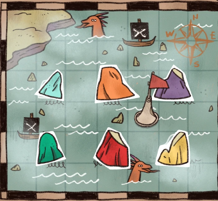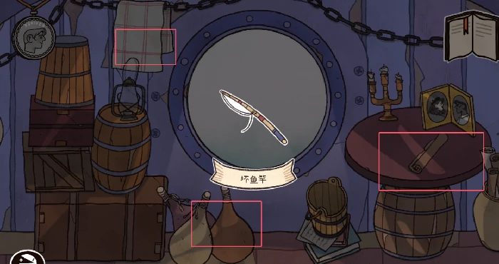 进新场景,捡坏鱼竿和布,把坐标棋子放桌面地图,完成对应小游戏。棋子位置参考沙滩标记条推断。