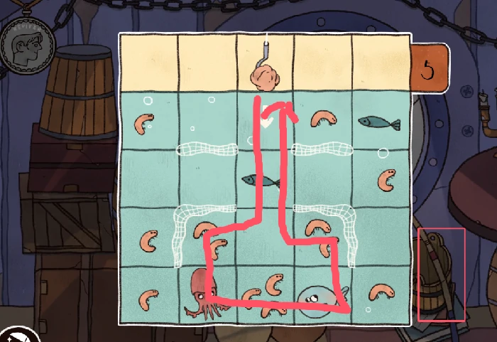 回旧场景,放蝌蚪到水杯,放乌贼到墨水瓶。去新区域,捡青蛙、兑换券和玻璃瓶。