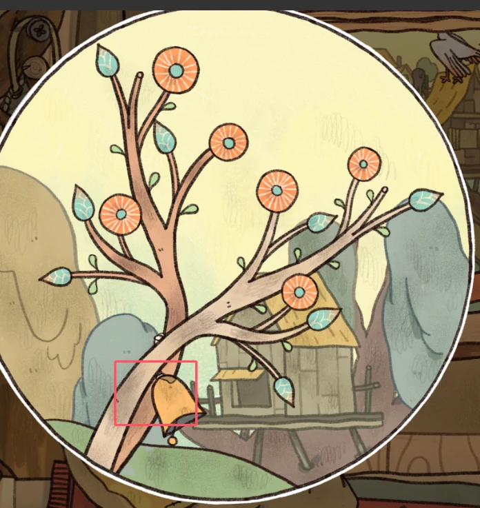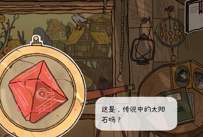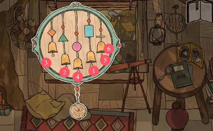 点窗外树,完成小游戏,拿铃铛。挂铃铛到风铃,按右下角罐子水满顺序摇风铃。摇完点风铃,再点太阳石。