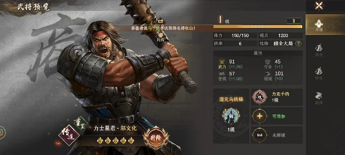 最后一位武将灵活选,补高输出或强力增益型角色。像邬文化,能强化武力伤害,攻击有概率沉默敌人,减轻开荒压力。