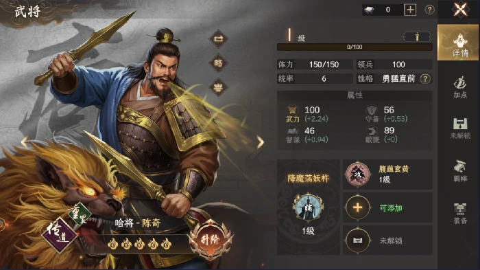 开局系统送的陈奇,优先培养,能给队伍加50%武力属性,还能按伤害比例为全队回血。
