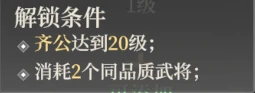 武将初始开启第一个次要术法栏位,等级达20级,消耗两名同品质武将解锁第二个栏位。