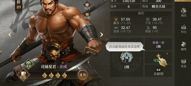 主要和次要术法升级要“术法经验”,通过武将授业获取。