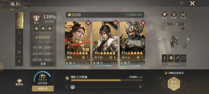 其三,纯攻高配阵容:选哪吒、苏全忠、邓九公,全用骑兵。该阵容利用连击机制和哪吒流血特效爆发高,三人全武力加点,适合追求极致输出玩家,开荒和比武表现亮眼。