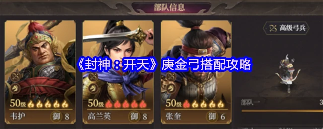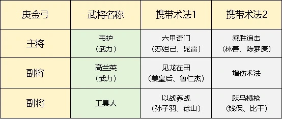 工具人武将选张奎,帮助叠加庚金,加快节奏。若倾向辅助型角色,选姬发这类弓兵辅助,增强团队作战能力。