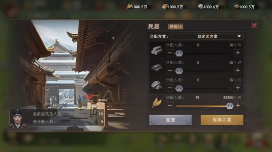 游戏基础资源有粮草、木材、石料和铜矿。建筑升级耗木、石、铜,募兵需粮食、木材和铜矿。通过占领开发城外资源地、升级内城资源建筑、安排平民在民居生产、在资源地屯田、派遣武将周游获取资源。资源不均时用城内“商市”建筑互换资源。