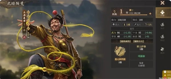 2. 攻城掠地(哪吒传道):对目标造成28%武力伤害,降低其306守备与智谋,持续两回合,是破甲核心技,配合庚金增强秒杀能力。