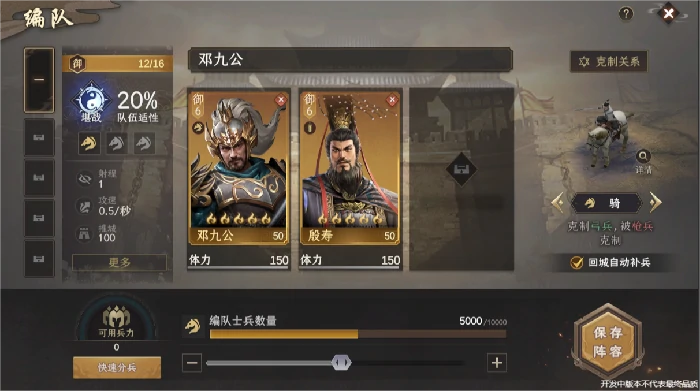 选兵种:根据武将兵种适性选兵种,合理搭配提部队属性。