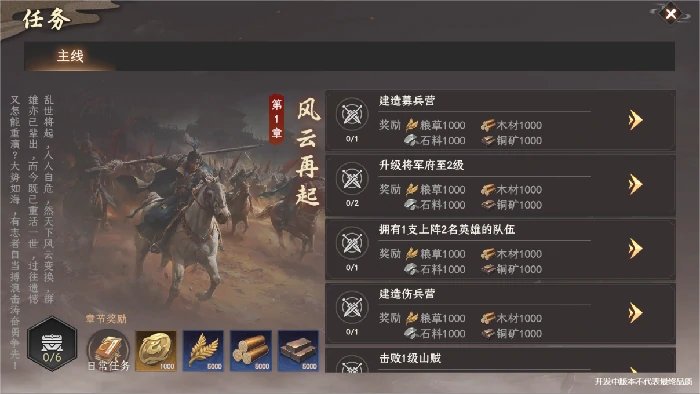 跟任务:跟随主线任务推进,完成章节获丰厚奖励,缺资源灵活调整,如缺石料升采石所或占高级石料领地。