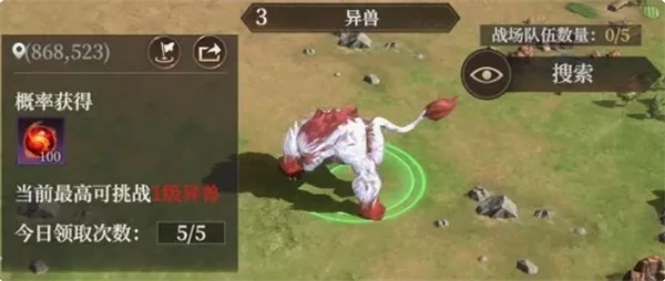 2、点击主界面左下角搜索图标,选“搜寻异兽”,系统自动定位最近异兽。