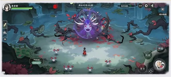 魅魔蓄力召唤多个木系怪物,怪物追踪玩家并自爆有范围伤害。边移动边清理怪物,防被包围。