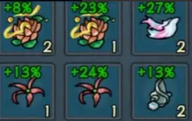 (1)增伤类:以贝壳、兽骨、琥珀为主材。莲花清瘟、耗子尾汁、百草枯、神仙水,提伤害1% - 30%。