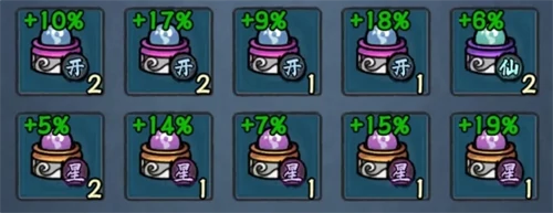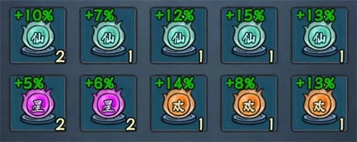 (2)五行类:以五行石为主材,对应属性修士生效。五行金丹、五行木丹、五行水丹、五行火丹、五行土丹,分别提金、木、水、火、土属性修士气血上限1% - 20%。