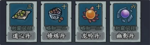 (3)经验类:所有丹方都可能产出。修炼丹提杀怪经验1% - 15%,持续30分钟;回春丹固定加300经验,主要用四色辉晶或绿色药材炼制,不计入图鉴;道心丹加几百经验,主要用四色辉晶或绿色药材炼制。