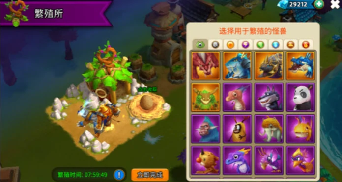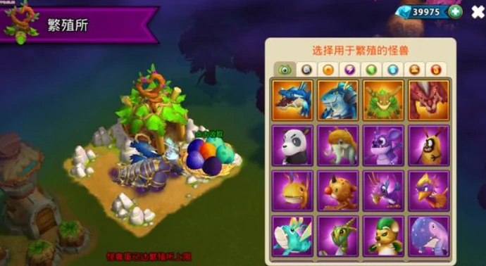 1. 右侧列表显示所有怪兽,选两只想繁殖的宠物,点“繁殖”按钮或拖至左侧繁殖槽开始繁殖。