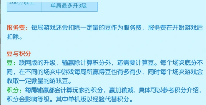 知晓服务费:每局游戏开始,系统自动扣除一定数量游戏豆作服务费。