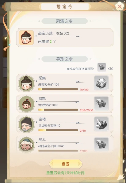 用撰宝令查看当前寻宝任务,完成指定任务拿额外奖励。