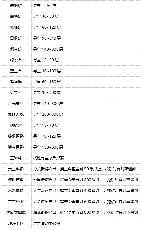 2. 初期部分区域需矿镐达一定等级才能挖掘,挖掘次数增加,矿镐自动升级,最高到5级。